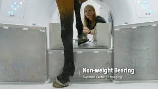 Fetlock joint, sagittal slice of a contrast study in the bone window – The contrast agent is embedded in the cartilage lesions. In this case there are both partial thickness and full-thickness-lesions